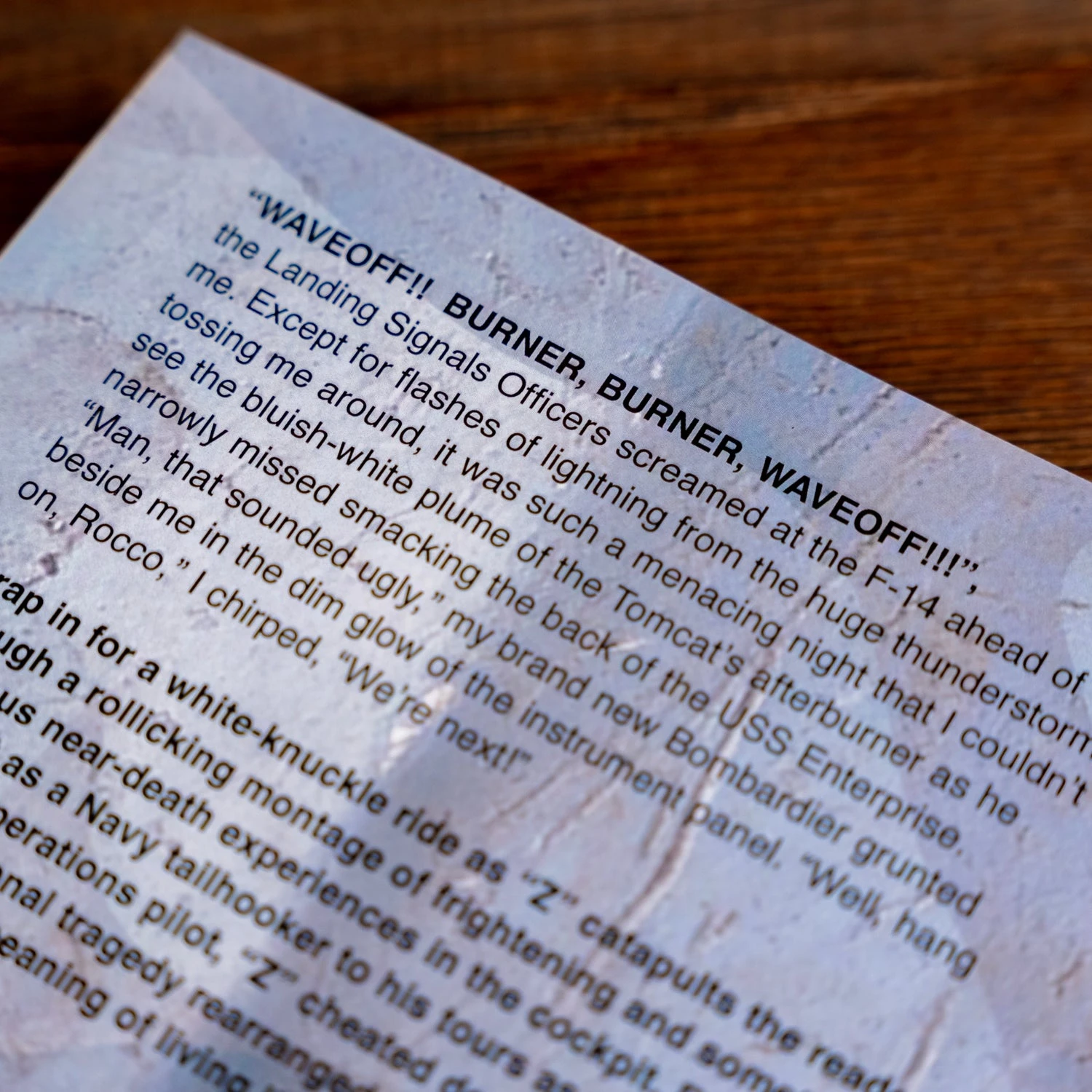 “Strap in for a white-knuckle ride as Col. Craig “Z” Ziemba catapults the reader through a rollicking montage of frightening and sometimes hilarious near-death experiences over three decades in the cockpit. His unique career that began flying jets off of Navy aircraft carriers followed by heavy Stratotankers and Special Operations turboprops in the Air Force included combat in five different aircraft types over three different theaters. Specializing in high value targeting of the world’s most wanted terrorists, “Z” cheated death with regularity until a personal tragedy rearranged his priorities and taught him the real meaning of living life to the fullest. Whether you’re an aviation enthusiast or just like a fast-moving story, this book will surely entertain, inspire, and provoke you to ponder the beauty and brevity of life.”
