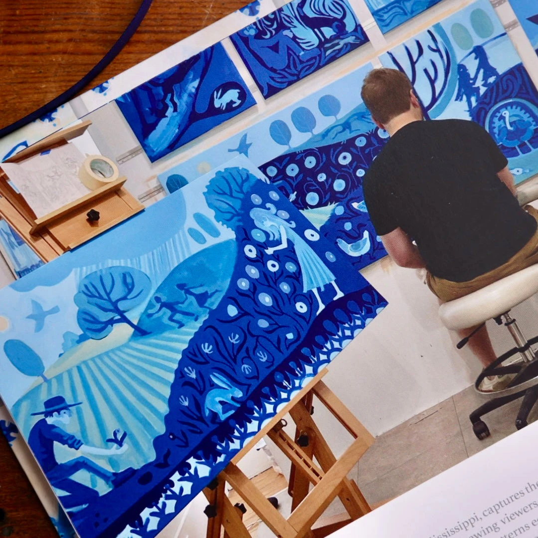 A Story Told in Blue invites you into the world of artist Adam Trest, where nearly 50 pieces of his artwork come to life, all in shades of blue. The book takes you on a journey from the inspiration sparked by an unforgettable trip to Portugal, through the sketches, and finally to the stunning finished pieces. Alongside the artwork, Adam shares personal stories about his relationship with his dad and growing up in Mississippi, adding a heartfelt layer to the experience. It’s a mix of art, memories, and the color blue that tells a deeply personal story.