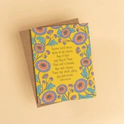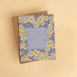 Want to send an uplifting message or encouraging note? The “Be Still My Soul” greeting card, framed by blue violet and moonstone floral against a thunder blue background, is the perfect way to say “I’m thinking of you” or “I care about you.” Each card features a hymn’s lyrics on the front and its history on the back.