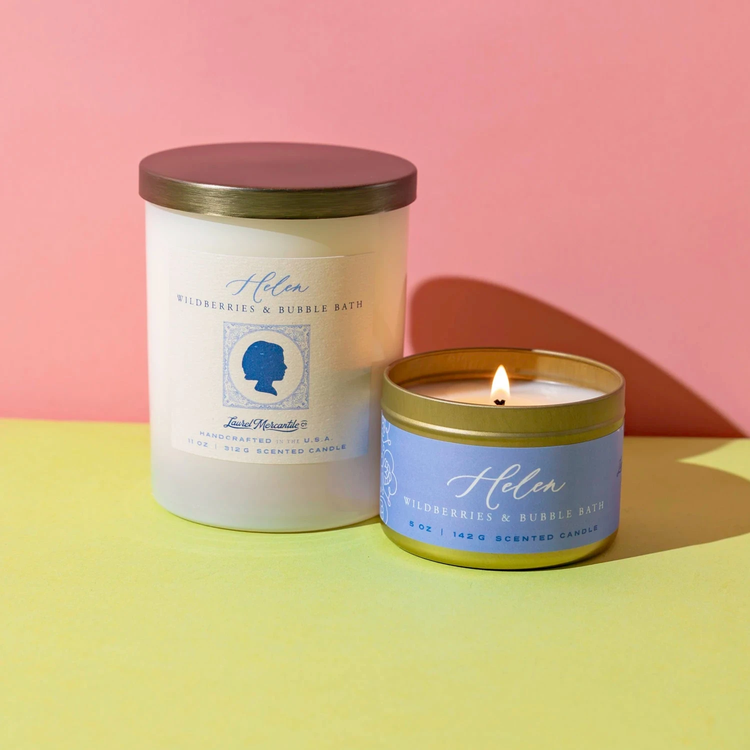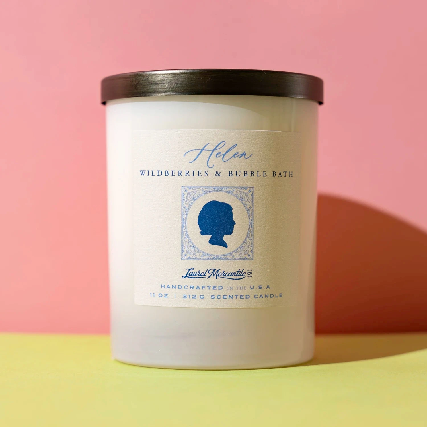 “While I’m getting ready for work in the mornings, Helen takes a bath beside me in bubbles up to her neck, splashing her mermaid toys through the foam. When she’s done she climbs up to my perfume cabinet always looking for the same square glass bottle and asks if I will spray her one time with it, and I oblige. After her pancakes and berries at breakfast, and a bottle for Mae, we’re out the door and getting our goodbye kisses on the porch. Her little arms cling around me so tight and I bury my face into her neck and breathe her in. Wild berries and bubble bath, and the tiniest bit of jasmine: that’s what will always remind me of my oldest baby.” – Erin