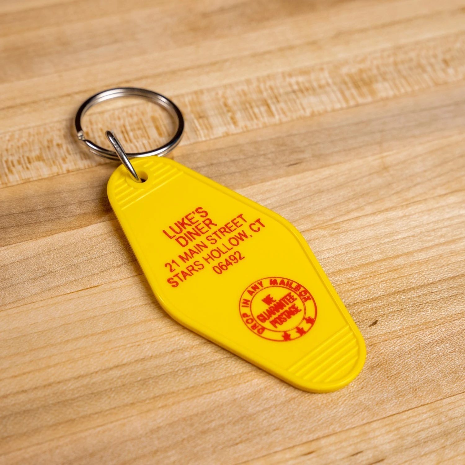 Inspired by vintage style motel key fobs that evoke our favorite travel memories. This motel key fob is a tribute to our favorite diner, where you can always get a cup coffee. A subtle way to have your favorite fictional place with you at all times.ย ย