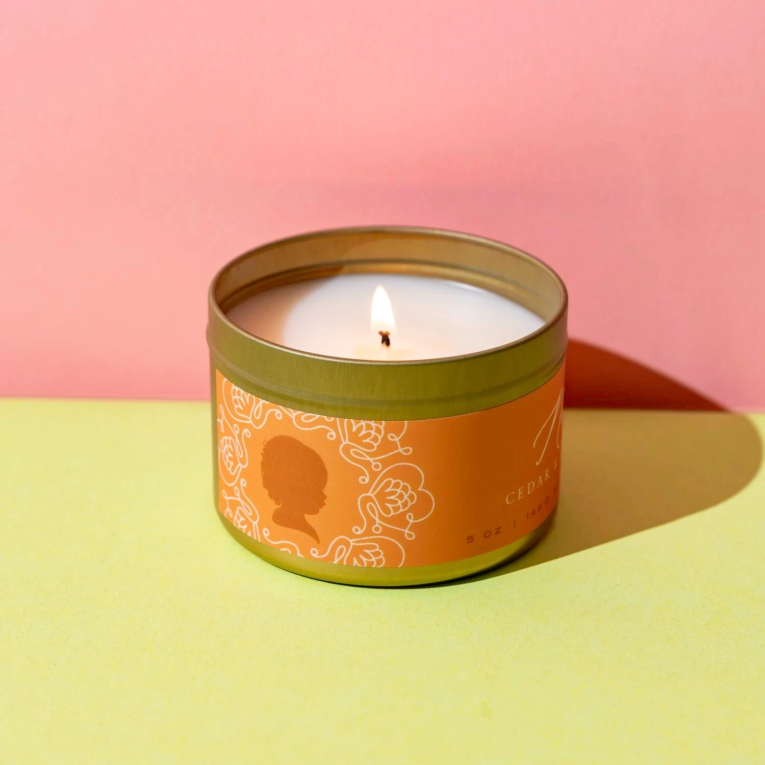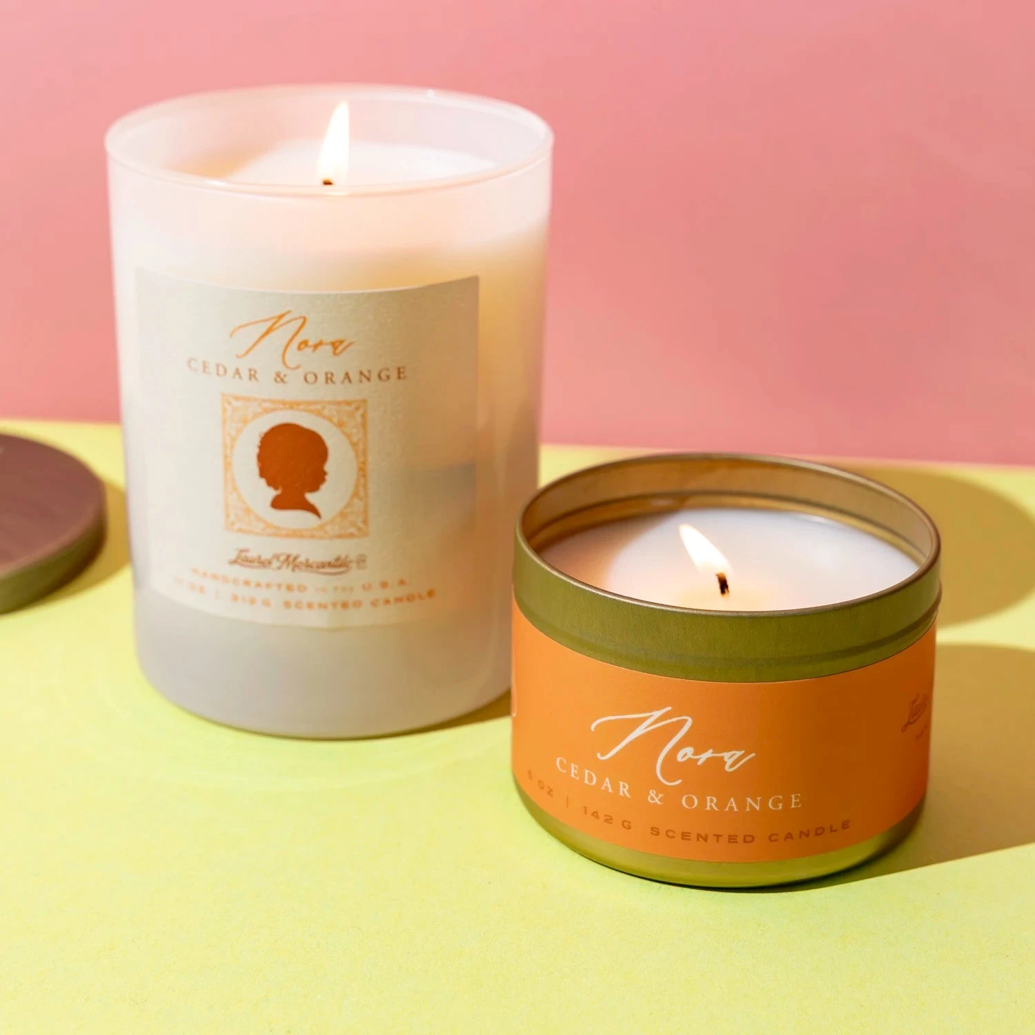 “Fresh, woodsy, and calming — this scent brings to mind fond memories of snuggling a freshly bathed baby girl in front of an October fireplace. Base notes of warm cedar and green tea are brightened with a splash of citrus oil, filling your home with a light and mellow aroma.”
