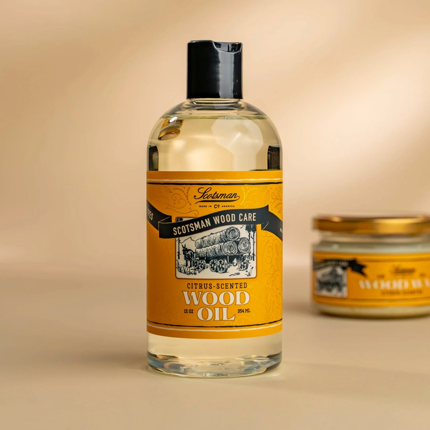 Scotsman Co. Wood Oil is made of 100% food safe mineral oil. Wood oil works to restore and revive wood surfaces. Conditioning wood products is important to keeping them maintained and lasting a lifetime. Oiling wood products every 3-4 weeks helps prevent wood from drying, splitting, or cracking. Pairs with Scotsman Wood Wax.