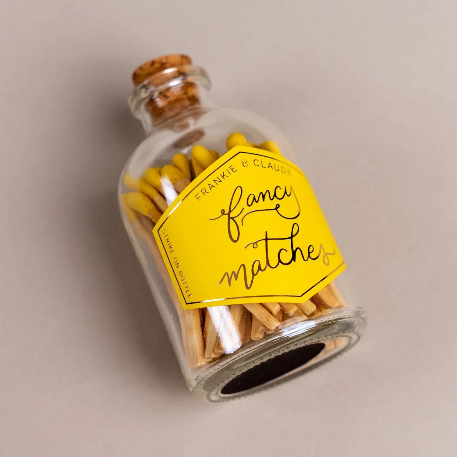 Adorn your mantle with custom colored matches tucked into a corked glass jar. A match-striker is affixed to the bottom. Matches are easy to remove; simply turn over the jar and give it a shake.