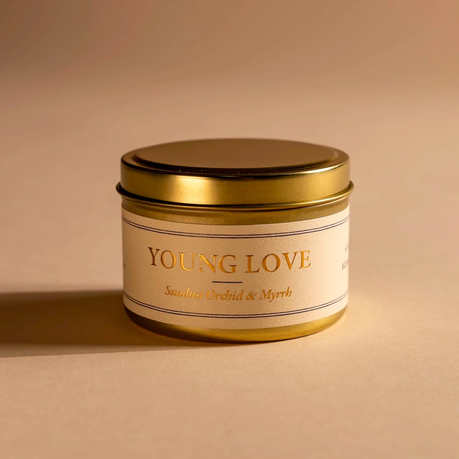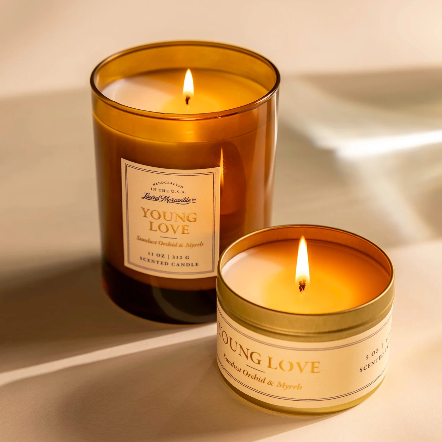 “In the fall of my sophomore year of college, I bought a tiny bottle of perfume that became my signature fragrance. I was wearing it the week Ben and I met in December 2004 and it became so much a part of that experience that when I smell the rich, spicy and floral scent of it I am 19 years old again. Christmas is coming and I’ve met my husband, my future home. We took the tiny remnant of that fragrance that no longer exists and saved it forever as Young Love. I can light this candle and always remember: this is what falling in love feels like.” – Erin